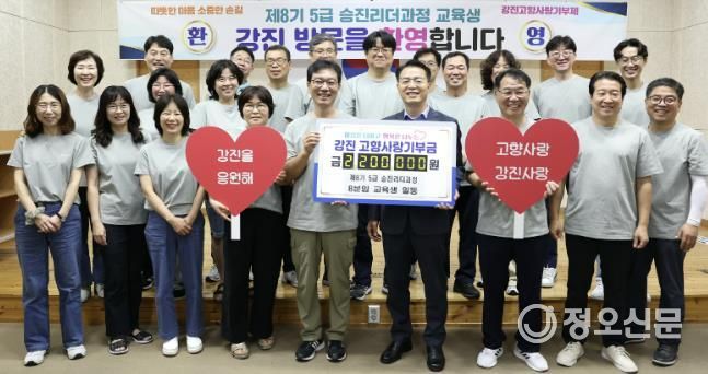 강진군은 지난 6일, 지방자치인재개발원 제8기 5급 승진리더과정 8분임 교육생이 교육기간 중 견학 차 강진을 찾아 고향사랑기부금 220만원을 기탁했다고 밝혔다.