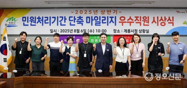 정오신문 관리자 기자 | 계룡시는 6일 시청 상황실에서 신속한 민원처리로 시민 행정편의를 높인 ‘마일리지 우수공무원’ 10명을 선정해 시상식을 가졌다고 밝혔다.