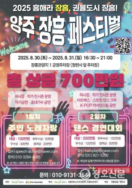 정오신문 관리자 기자 | 양주시가 오는 8월 30일부터 31일까지 이틀간 장흥관광지 제1공영주차장에서 '양주 장흥 페스티벌'을 개최한다.