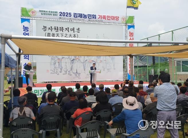 김제시에 따르면 7일 정성주 김제시장, 전국농민회총연맹 하원오 의장 등 내외빈과 회원 등 200여명이 참석한 가운데 김제시 조수골 체험 휴양마을에서 '2025 김제농민회 가족한마당 행사'가 열렸다.