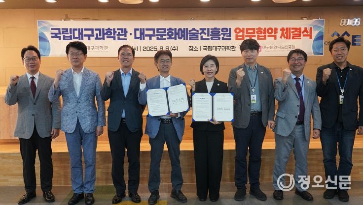 정오신문 관리자 기자 | 대구문화예술진흥원과 국립대구과학관은 8월 6일 국립대구과학관에서 지역사회 과학 문화 확산과 문화예술 진흥을 위한 업무협약(MOU)을 체결했다.