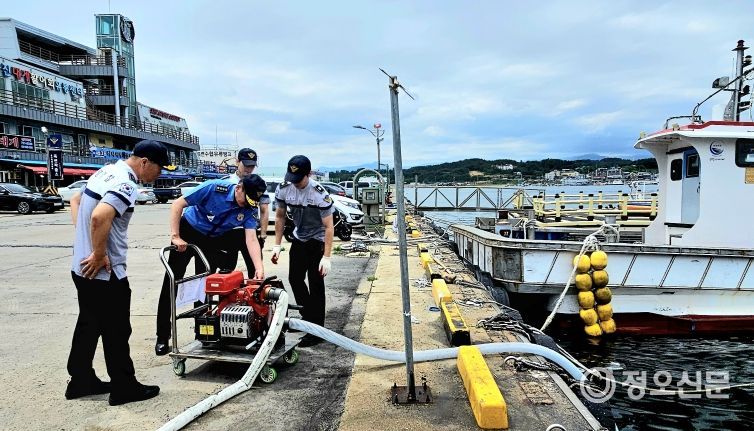 특히 죽변파출소 현장에서는 선박 화재 등 긴급 상황에 대비해 보유 중인 동력소방펌프를 김용진 청장이 직접 작동해보는 시연 일정도 진행, 현장 장비의 작동상태와 실효성을 확인하며 대응 태세를 점검했다.
