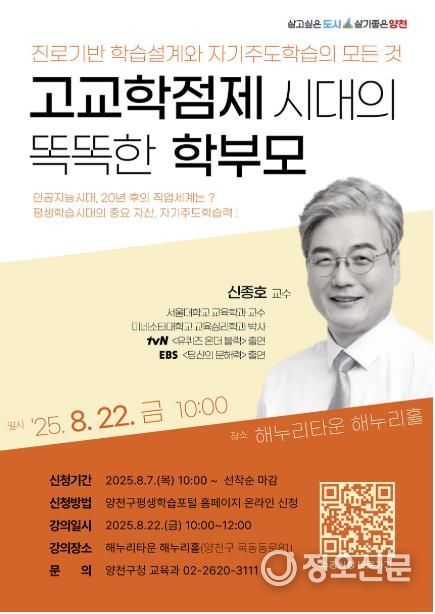 정오신문 관리자 기자 | 양천구는 고교학점제 전면 시행과 인공지능(AI) 시대의 빠른 변화 속에서 미래 교육환경에 효과적으로 대응할 수 있도록 돕기 위해 오는 22일 진로·진학 명사특강을 개최한다고 밝혔다.