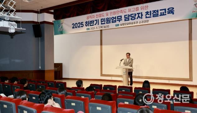 정오신문 관리자 기자 | 보령시는 공직자 친절도 및 민원만족도 향상을 위해 지난 7일 보령문화예술회관 소공연장에서 ‘2025년 하반기 민원업무 담당자 친절교육’을 실시했다고 밝혔다.