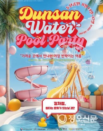 정오신문 관리자 기자 | 완주문화재단은 오는 8월 13일부터 17일까지 5일간, 완주 둔산공원 일대에서 ‘둔산 워터 풀파티(Dunsan Water Pool Party) – 썸타는 문화가 있는 날’ 행사를 개최한다.