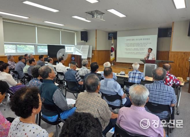 정오신문 관리자 기자 | 박영규 남해군 부군수가 8월 7일 남면 복지회관에서 ‘효도남해 통합돌봄’이라는 주제로 노인대학생들을 대상으로 특강을 했다.