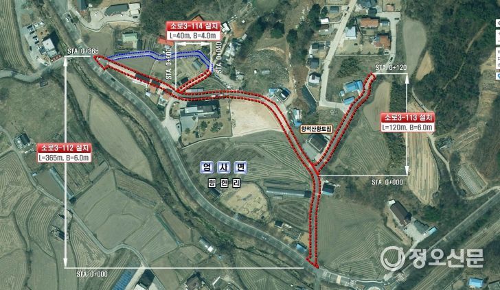 공사 대상은 향한리 일대 도시계획도로 소로3-112호, 소로3-113호, 소로3-114호로 분류된 3개 노선이다.