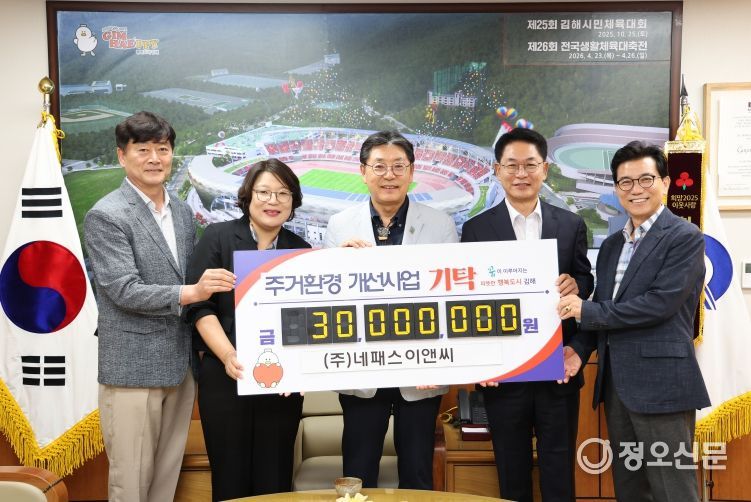 정오신문 관리자 기자 | 김해시는 ‘LS일렉트릭(부산) 2공장’을 건설 중인 ㈜네패스이앤씨(대표이사 이세희· 이상태)에서 취약계층 어르신 주거환경 개선에 3,000만원을 후원하고 임직원 봉사활동을 진행했다고 8일 밝혔다.