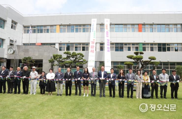 개관식은 사전 공연을 시작으로 축사, 학생 대표 소감 발표, 사업 경과 보고, 색줄 자르기, 학교 시설 관람 순으로 진행됐다.