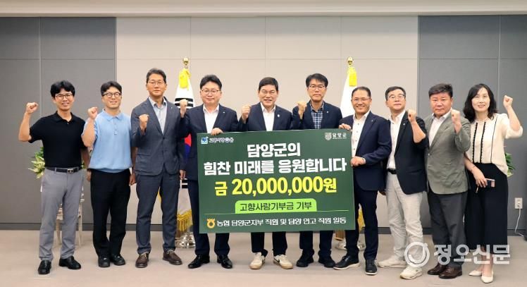 정오신문 관리자 기자 | 담양군은 8일 농협 담양군지부와 담양 연고 직원들이 담양군청을 방문해 고향사랑기부금 2천만 원을 전달했다고 밝혔다.