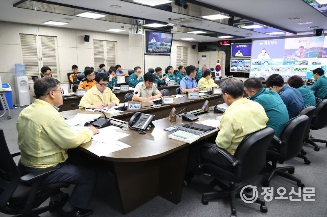 정오신문 관리자 기자 | 경남도는 8일, 박명균 행정부지사 주재로 도청에서 도·시군과 기상청, 경찰청, 소방본부, 창원해양경찰서, 한국전력·도로·농어촌·수자원공사 등 유관기관과 9~10일 예보된 호우 대비 대책회의를 개최했다.