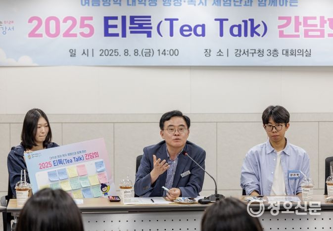 한편, 티톡(Tea Talk) 간담회는 지난해부터 시작된 강서구의 대표 소통 정책이다. ‘티 타임(Tea Time)’처럼 편안하고 자유로운 분위기에서 직접 다양한 계층의 주민들과 만나 목소리를 듣고 눈높이 행정을 펼치겠다는 진 구청장의 의지가 반영됐다.
