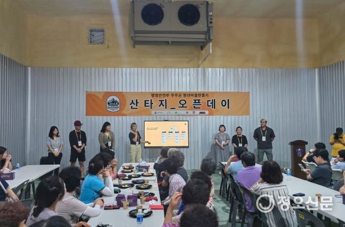 정오신문 관리자 기자 | 무주군 무풍면 산타지 하우스(복합문화공간) 오픈 행사가 지난 8일 개최됐다. 이날 행사는 ‘산타지(SANTASY)’ 마을 사업 추진과 관련한 주민 간담회를 위해 마련됐다.