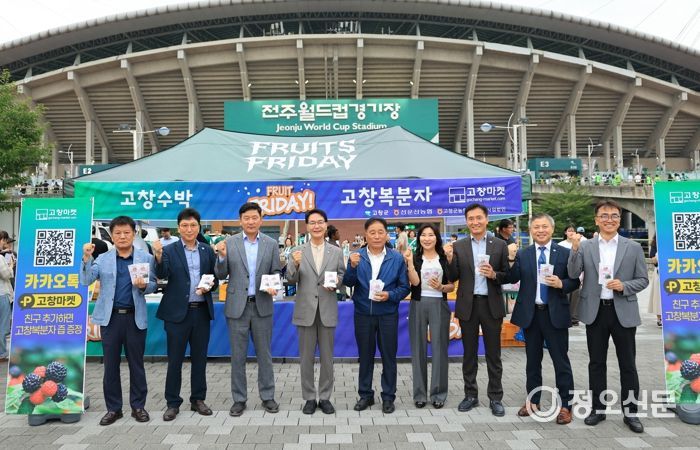 정오신문 관리자 기자 | 고창군이 전북현대모터스축구단과 손잡고 복분자와 수박 등 농특산품 홍보 행사를 열었다.