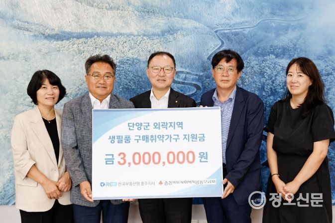 정오신문 관리자 기자 | 한국부동산원 충주지사는 지난 8일 단양군에 지역 취약계층을 위한 300만 원 상당의 생필품 꾸러미를 기탁하며 따뜻한 나눔을 실천했다.