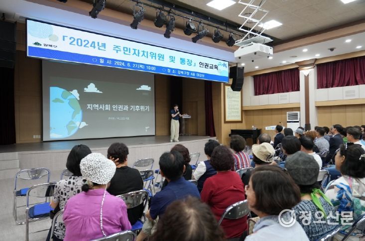 정오신문 관리자 기자 | 서울 강북구는 오는 12일 강북구청 대강당에서 관내 13개 동 주민자치위원과 통장 130명을 대상으로 인권교육을 실시한다.