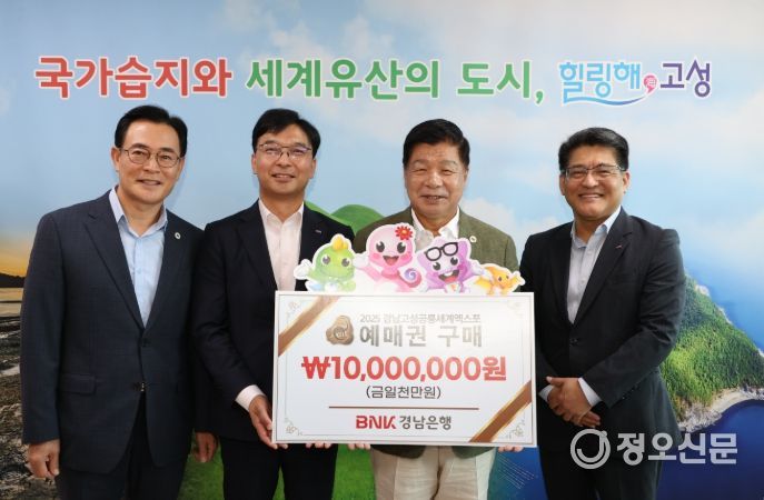 정오신문 관리자 기자 | (재)고성문화관광재단은 BNK경남은행(상무 임재문)이'2025 경남고성공룡세계엑스포'의 성공 개최를 응원하는 뜻으로, 1천만 원 상당의 예매권을 대량 구매했다고 8월 8일 밝혔다.