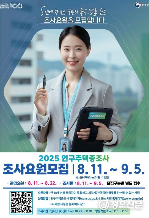 접수는 오는 2025년 8월 11일부터 9월 5일까지이며, 관리요원은 8월 22일까지, 조사원은 9월 5일까지 접수한다.