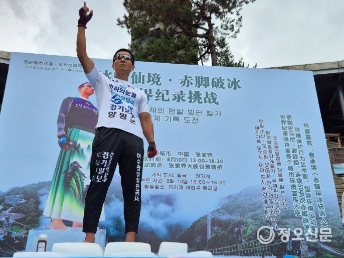 정오신문 관리자 기자 | 광양시 홍보대사이자 국제환경운동가로 활동 중인 ‘맨발의 사나이’ 조승환이 중국 장가계에서 또 한 번 세계를 놀라게 했다.