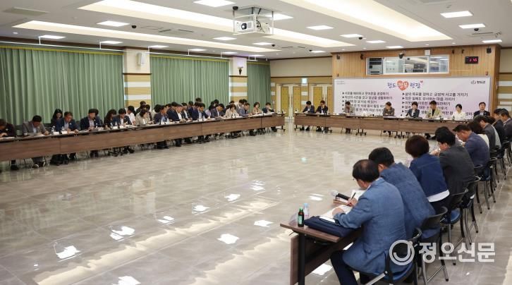 정오신문 관리자 기자 | 청도군은 지난 7일 군청 대회의실에서 각 부서장 및 팀장, 경북연구원의 분야별 연구진 등 100여 명이 참석한 가운데 『비전2040 청도군 중장기발전계획』실행을 위한 부서 간담회를 실시했다.