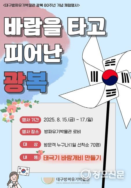 정오신문 관리자 기자 | (재)대구문화예술진흥원 박물관운영본부 소속 대구 시립 3개 박물관(대구방짜유기박물관, 대구근대역사관, 대구향토역사관)에서는 광복 80주년을 기념해 8월 15일부터 17일까지 3일간 각 박물관 별로 광복의 역사적 의미와 애국심 등을 생각해 보는 체험행사를 개최한다.