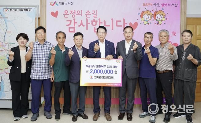 정오신문 관리자 기자 | 충남 서산시는 지난 11일 인지면 이장단협의회가 집중 호우 피해 성금으로 2백만 원을 기탁했다고 밝혔다.