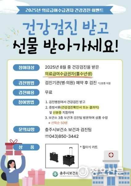 정오신문 관리자 기자 | 충주시가 지역 의료급여수급권자의 건강검진 참여율을 높이기 위해 ‘의료급여수급권자 일반건강검진 이벤트’를 실시한다고 12일 밝혔다.