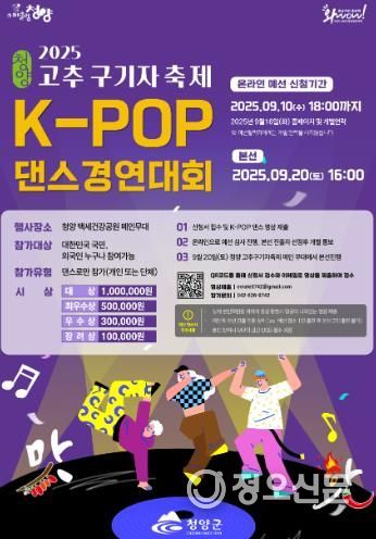 정오신문 관리자 기자 | 청양군이 오는 9월 19일부터 열리는 제26회 청양고추구기자축제의 K-POP댄스 경연대회와 제2회 고추 구기자 가요제 참가자를 오는 14일부터 9월 10일까지 모집한다.