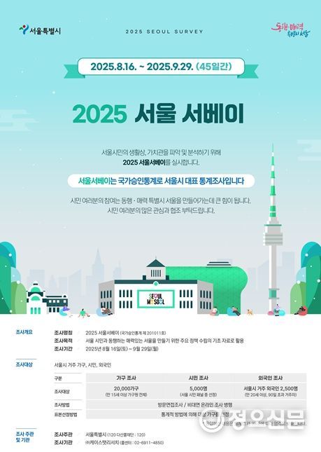 정오신문 관리자 기자 | 서울시는 오는 8월 16일부터 9월 29일까지 『2025 서울서베이』를 실시한다고 밝혔다.