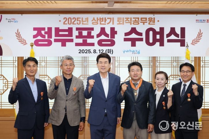정오신문 관리자 기자 | 포항시는 12일 시청 대외협력실에서 ‘2025년 상반기 퇴직자에 대한 정부포상 수여식’을 열고, 장기간 시정 발전과 국가에 기여한 퇴직 공무원들의 공로를 기렸다.