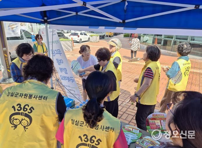 정오신문 관리자 기자 | 임실군자원봉사센터가 8월 8일부터 21일까지 매일 오전 임실우체국 앞에서‘폭염 대비 안전 쉼터’를 운영하여, 군민들에게 생수와 부채를 나눠주며 시원한 나눔 봉사활동을 진행한다.