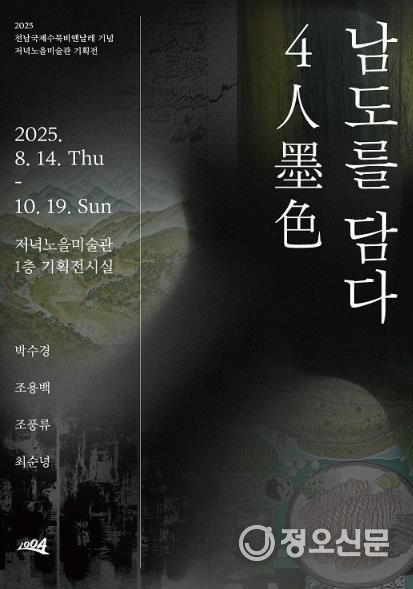 정오신문 관리자 기자 | 신안군 저녁노을미술관은 2025 전남국제수묵비엔날레를 기념하여 기획전 ‘4人墨色: 남도를 담다’를 개최한다고 밝혔다. 이번 전시는 오는 8월 14일부터 10월 19일까지 열리며, 남도의 예향 정신과 수묵의 매력을 담아낸 한국화 작품 22점을 선보인다.