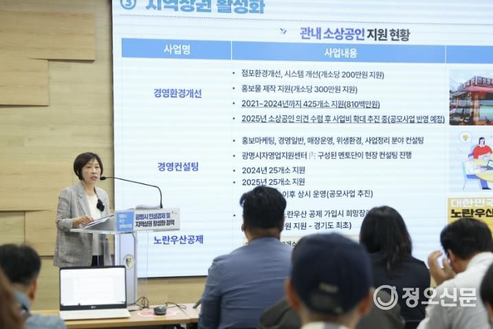 시는 2019년 ‘광명시 소상공인 지원에 관한 조례’를 제정해 지역상권을 보호하고 육성하기 위한 정책 기반을 마련했고, 2020년에는 경기도 최초로 ‘광명시자영업지원센터’를 설립해 체계적인 소상공인 지원체계를 갖췄다.