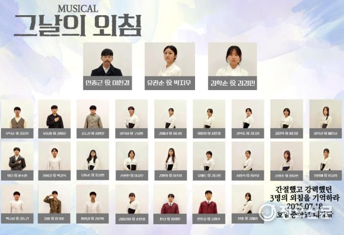 삼현여자중학교는 학생들이 직접 작사한 곡 ‘나의 나라, 나의 조국’을 뮤직비디오로 제작해 발표하고, 호암중학교는 안중근, 유관순, 김학순이 한자리에 모여 대화를 나누는 설정의 창작 뮤지컬 ‘그날의 외침’을 선보인다.