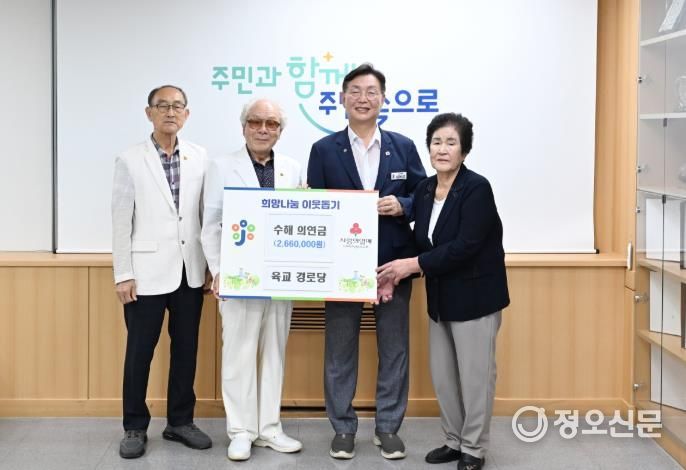 이번 성금은 수해 피해를 입은 주민을 돕기 위해 50여 명의 경로당 회원 어르신들이 십시일반 모금한 것으로 따뜻한 마음이 모여 그 의미가 더욱 깊다.