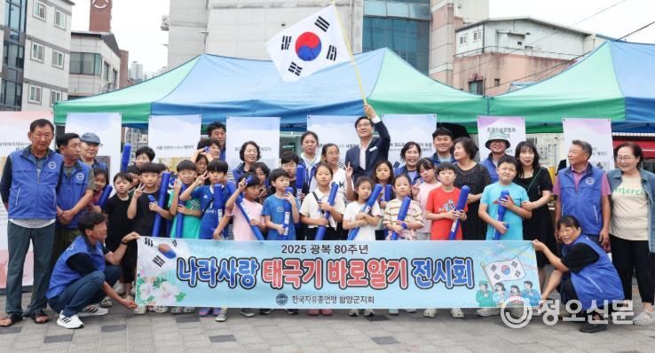 정오신문 관리자 기자 | 한국자유총연맹 함양군지회는 12일 오전 지리산 함양시장 불로장생 특화거리에서 제80주년 광복절을 맞아 ‘태극기 역사 사진전 및 나라사랑 태극기 나눔 행사’를 개최했다.