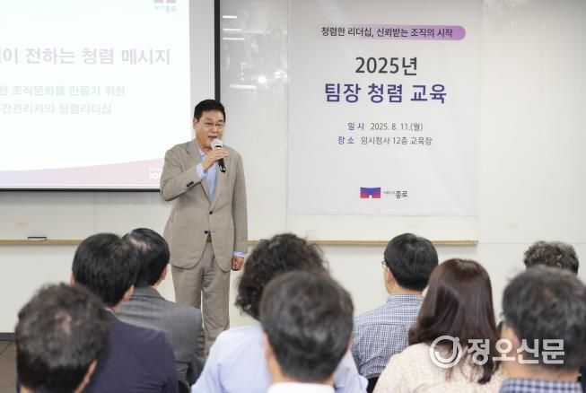 정오신문 관리자 기자 | 종로구는 8월 11일 청사 12층 교육장에서 팀장급 직원을 대상으로 청렴 교육을 실시했다.