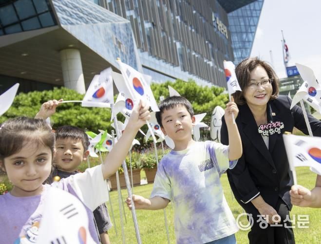 이날 박 구청장은 아동들에게 광복절의 뜻과 가치를 직접 설명하며 해방의 기쁨과 의미를 되새겼다. 이어 아이들과 함께 태극기를 손에 들고 “대한 독립 만세”를 외치며 그날의 감격을 재현했다.