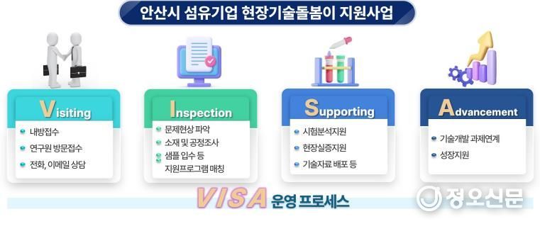 ‘현장기술돌봄이 지원사업’은 지난 2020년부터 안산시가 경기테크노파크 및 한국섬유소재연구원과 협력해 관내 섬유기업을 대상으로 ▲기술 애로 해소 ▲품질 개선 ▲신제품 개발 ▲시험·분석 등 현장 밀착형 기술지원을 무상 제공하는 사업이다.