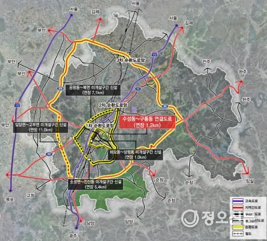 정오신문 관리자 기자 | 정읍시는 2040 도시기본계획에서 제시한 시가지 순환도로망 핵심 구간인 ‘수성–구룡 연결도로’ 기본구상 및 타당성 검토 용역에 착수했다고 13일 밝혔다.