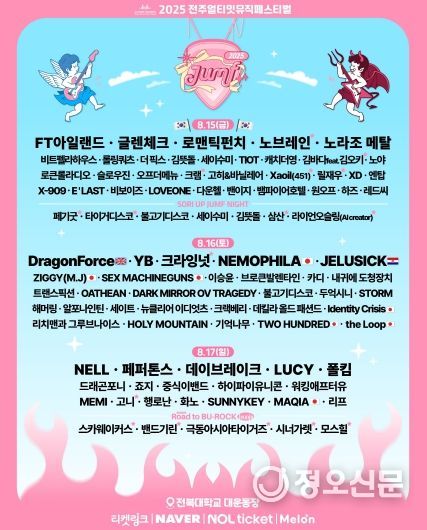 정오신문 관리자 기자 | 인디부터 오버까지 다양한 층의 관람객이 함께 즐길 수 있는 전주 대표 여름 축제인 ‘2025 전주얼티밋뮤직페스티벌(JUMF)’이 올해도 어김없이 음악팬들을 찾아온다.