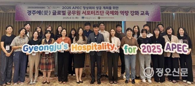 정오신문 관리자 기자 | 경주시는 라한셀렉트 경주 리겔홀에서 2025 APEC 정상회의의 성공 개최를 위해 소속 공무원과 유관기관 관계자를 대상으로 국제화 역량 강화교육을 실시했다고 13일 밝혔다.