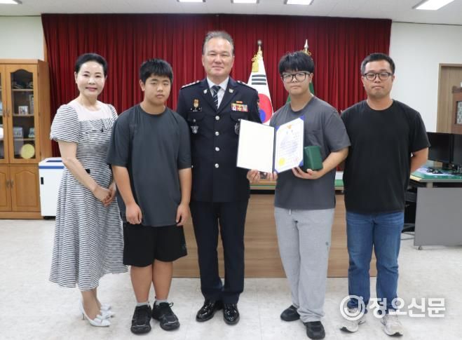 정오신문 관리자 기자 | 무안경찰서는 8월 11일 서장실에서 경찰서장, 경무과장, 학부모, 학생 등 10여 명이 참석한 가운데 무안북중학교 2학년에 재학중인 함형우 군에게 상장을 수여했다고 밝혔다.