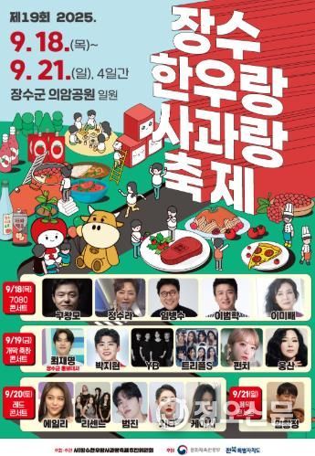 한편 장수군 대표축제 ‘제19회 장수 한우랑 사과랑 축제’는 지난해 제18회 축제 때 약 30만 명이 온·오프라인으로 참여하며 전북 최대 규모의 축제로서 명성을 입증했고 3년 연속 전북특별자치도 최우수축제 선정되는 등 장수군의 브랜드 가치를 높이고 지역경제 활성화에 크게 기여하고 있다.