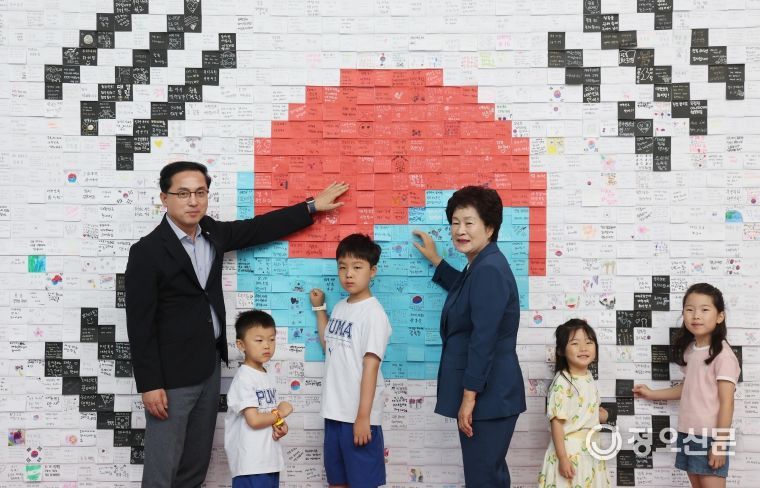 행사에 참여한 한 구민은 “매해 광복절마다 태극기를 달았지만, 이번처럼 직접 참여해 태극기를 만드니 감회가 새롭다”며 “작은 메시지들이 모여 큰 태극기가 완성된 모습은 정말 감동적이다”라고 말했다.
