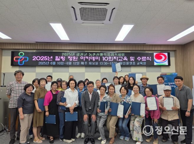정오신문 관리자 기자 | 합천군 농촌신활력플러스사업추진단은 8월 12일 합천영상테마파크 내 힐링플랫폼에서 ‘2025년 힐링 정원 아카데미’ 수료식을 열고, 총 23명의 수료생을 배출했다.