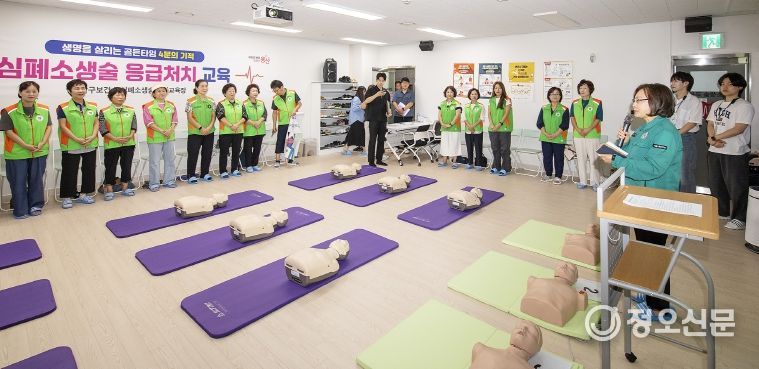 정오신문 관리자 기자 | 서울 용산구는 지난 8월 12일 보건소 심폐소생술 강의실에서 지역자율방재단원 50명을 대상으로 심폐소생술(CPR), 하임리히법, 자동심장충격기(AED) 사용법 등 실전형 응급처치 교육을 진행했다.