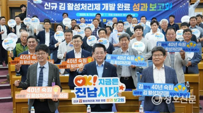 정오신문 관리자 기자 | 전라남도는 13일 국회에서 지난 3년간 연구·개발해 완성한 신규 활성처리제를 어업 현장에 신속히 보급하기 위해 국회의원, 관계기관, 어업인 등에게 설명하는 신규 김 활성처리제 개발 완료 성과보고회를 개최했다.
