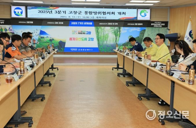 정오신문 관리자 기자 | 고창군이 13일 오후 군청 5층 대회의실에서 ‘2025년 을지연습과 연계한 통합방위협의회’를 개최했다.