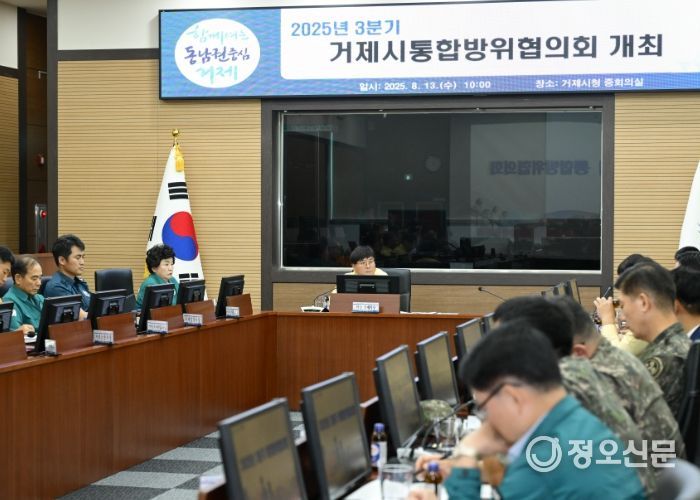 정오신문 관리자 기자 | 거제시 통합방위협의회는 지난 13일 거제시청 중회의실에서 민·관·군·경·소방 등 주요 기관장들이 참석한 가운데 ‘2025년 3분기 통합방위협의회’를 개최하고, 다가오는 ‘을지연습’의 성공적 수행을 위한 협력 방안을 논의했다.